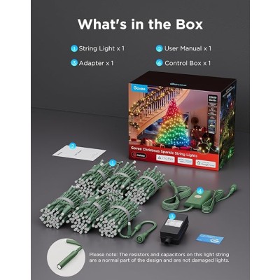 Govee Christmas Sparkle String Lights 99ft, RGBWIC String Lights with 375 Bullet-Head LEDs, App-Controlled, 140+ Scene Modes, 3D Shape Mapping, Music Sync,
